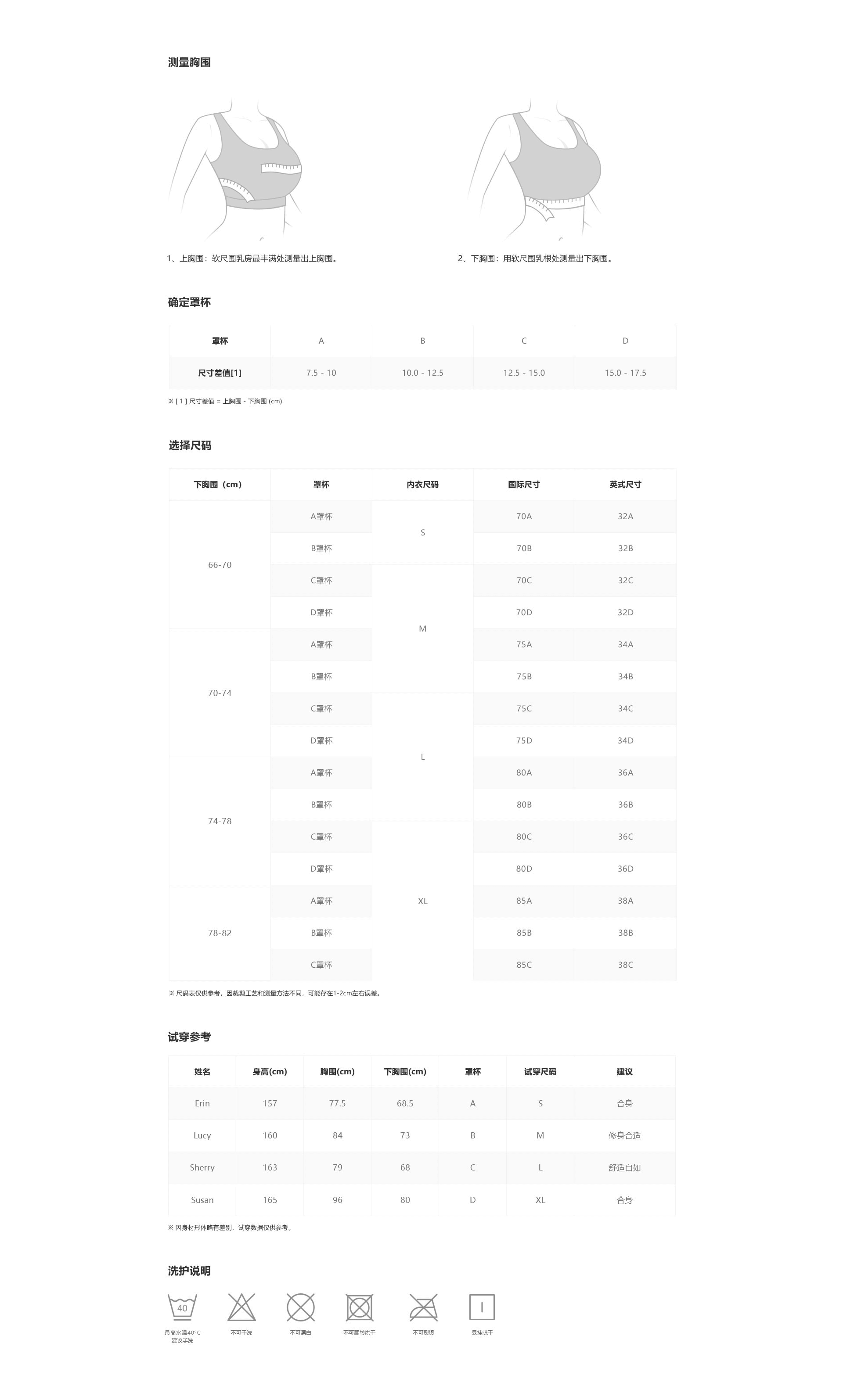 无钢圈一体式热压成型,贴合曲线温柔包裹不同胸型,提供