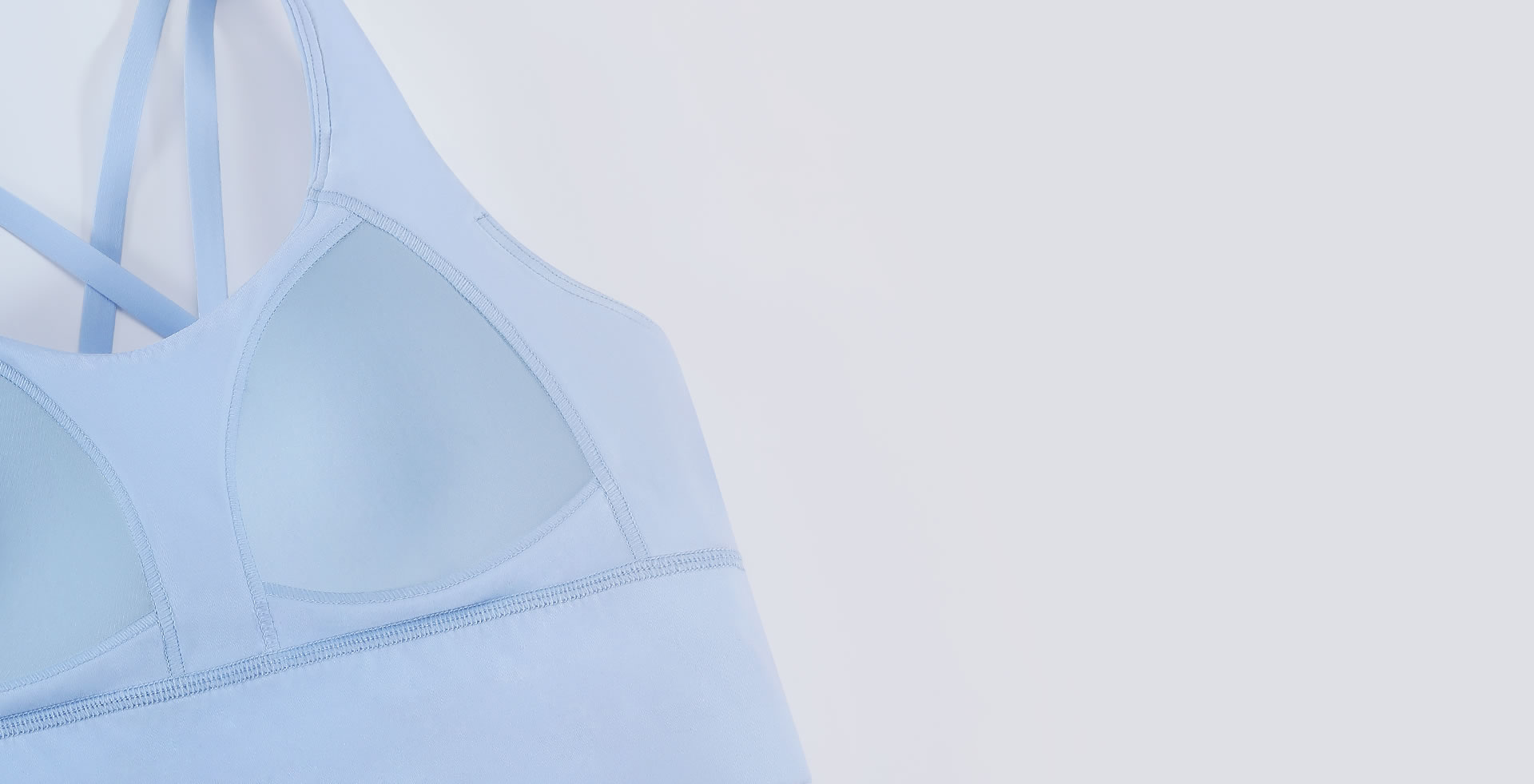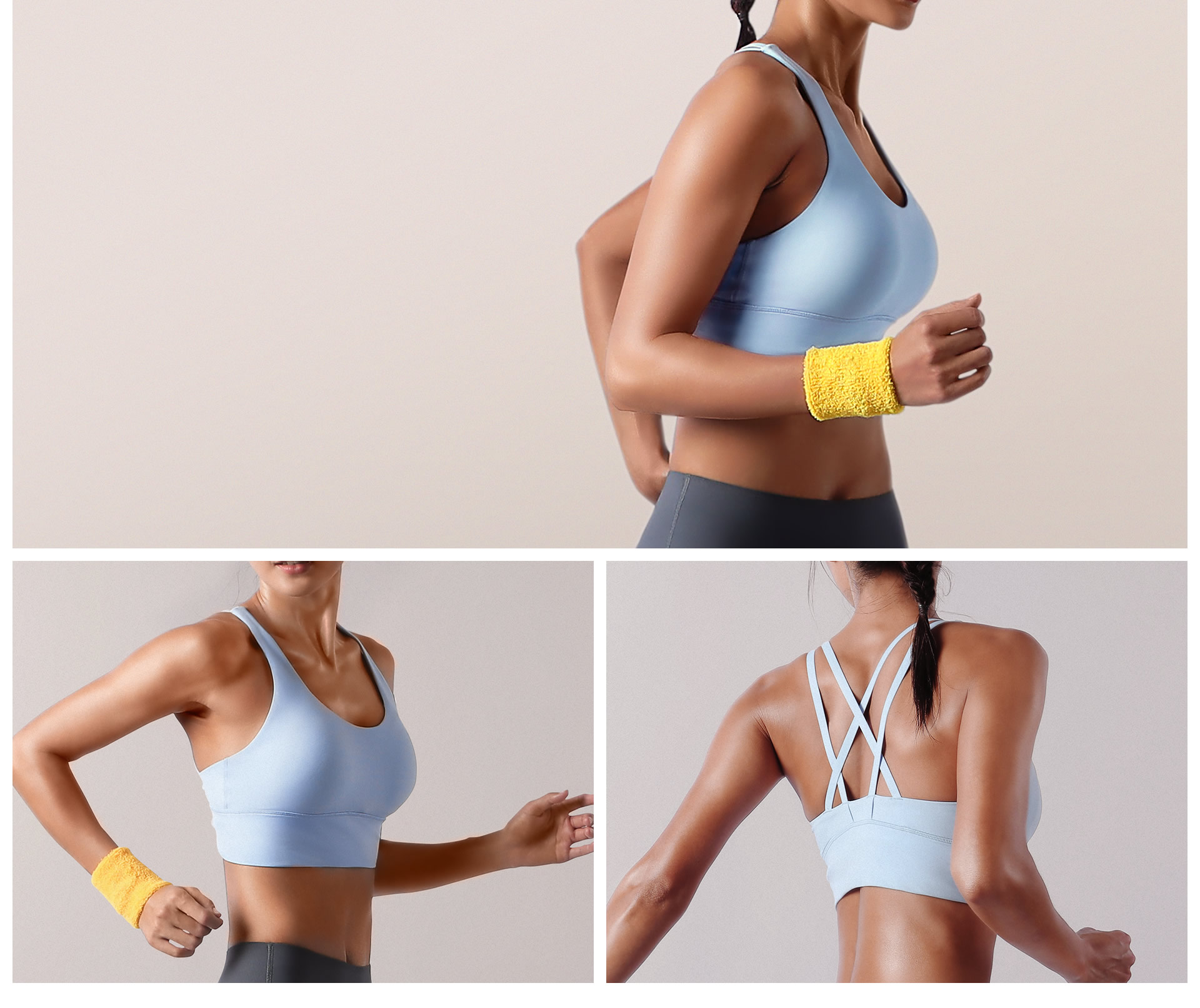 根据人体力学原理,运动内衣背部采用交叉露肩设计,科学有效的分担双肩所