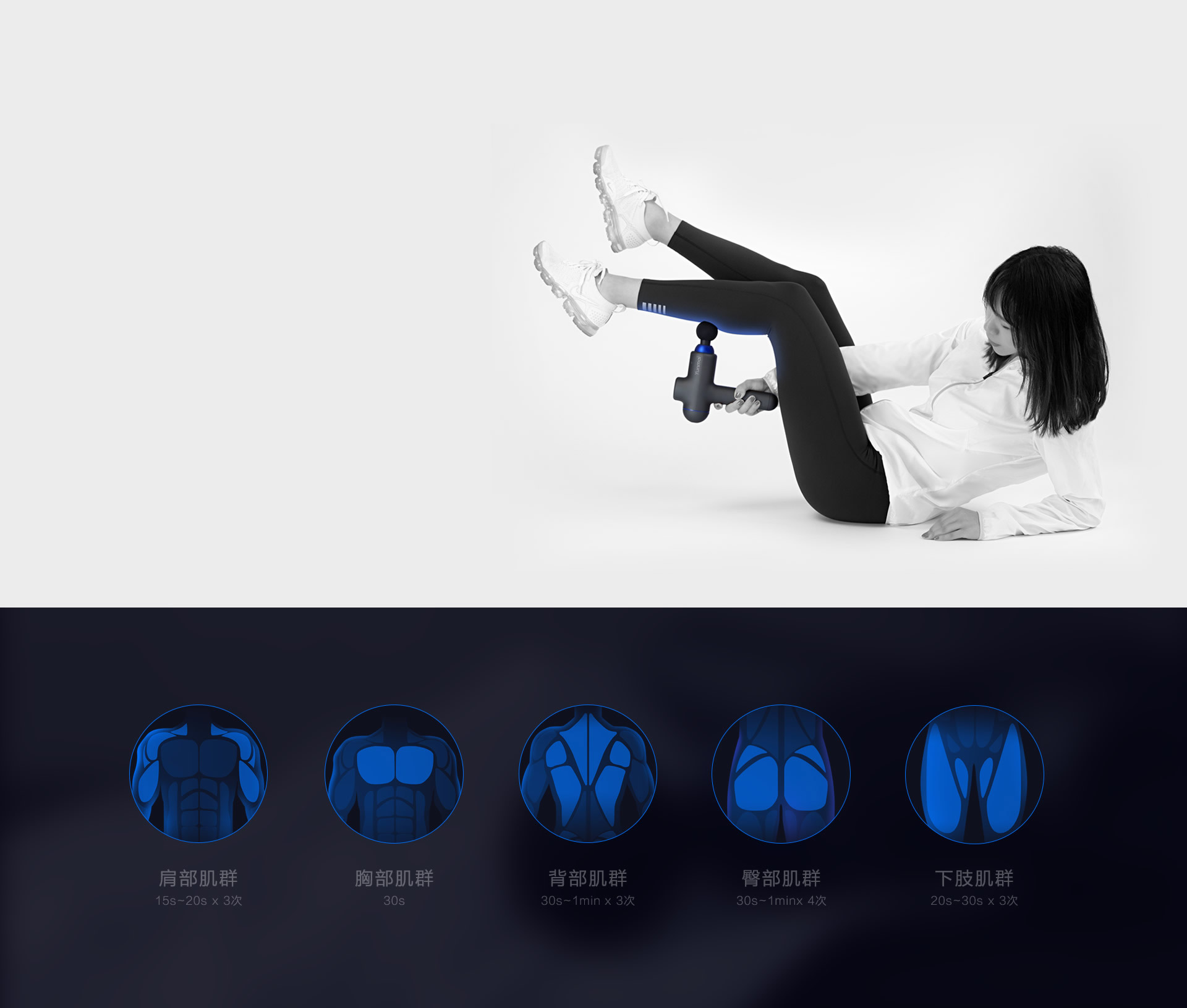 强劲有力的高频振动刺激,能够穿透深层筋膜,在梳理筋肉结节,防止肌肉粘连的同时,能使紧绷僵硬的肌肉组织松弛下来,大大降低运动后产生的疼痛不适,重新唤醒肌肉活力,由内到外赶走疲劳。