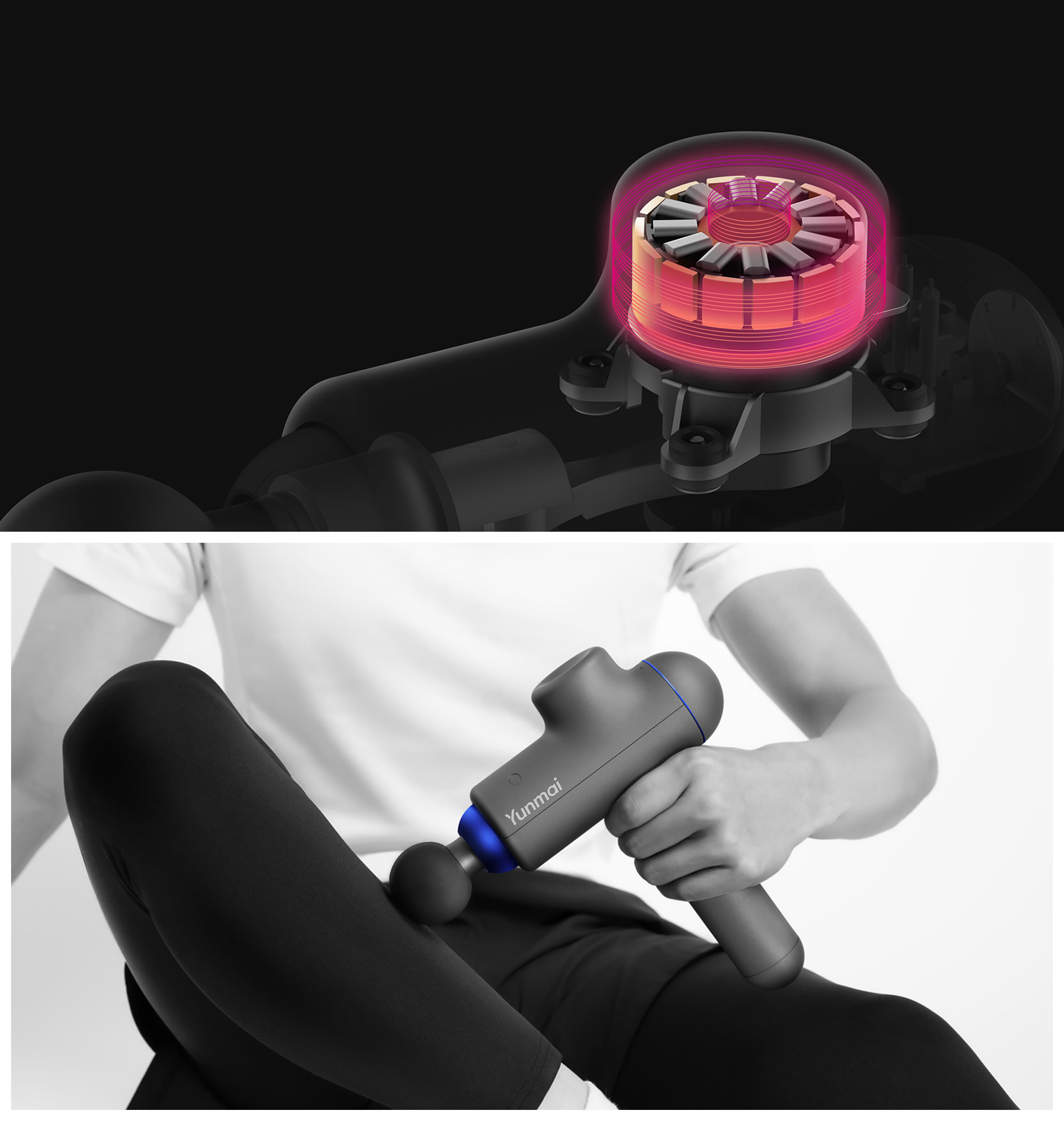 YUNMAI按摩筋膜枪使用24V大功率无刷电机,搭配双轴承转动结构,带来强劲澎湃的动力;3200转/分钟高转速冲击,能穿透10mm深层肌群,迅速击溃运动后产生的乳酸,赋予你直击肉体深处的舒适体验。