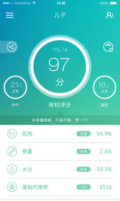 身体评分是指根据称重所检测数据,结合YUNMAI云端百万人群数据样本,综合评估所得出的 0 - 100 的评分系统,来通过打分直观展示给用户身体当前身体状况。