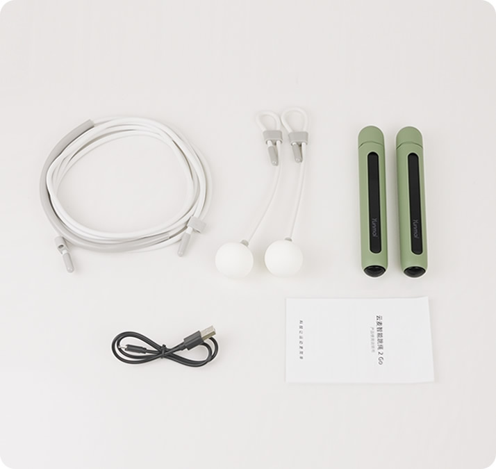 手柄x2、空气跳绳球x2、3米PVC绳子x1、充电线x1、说明书x1