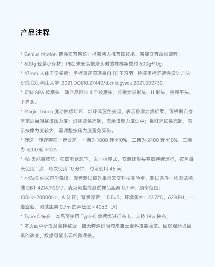 *600g轻巧身材:PB2未安装按摩头时的裸机净重约600g±10g;