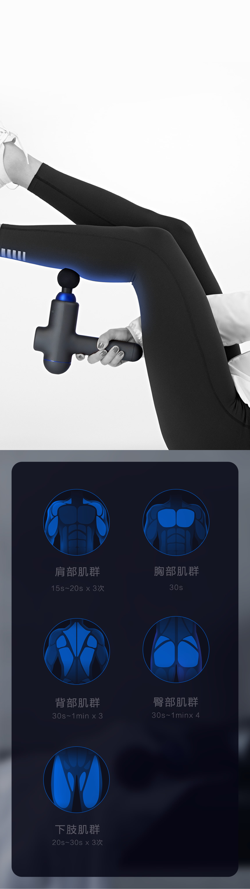 强劲有力的高频振动刺激,能够穿透深层筋膜,在梳理筋肉结节,防止肌肉粘连的同时,能使紧绷僵硬的肌肉组织松弛下来,大大降低运动后产生的疼痛不适,重新唤醒肌肉活力,由内到外赶走疲劳。