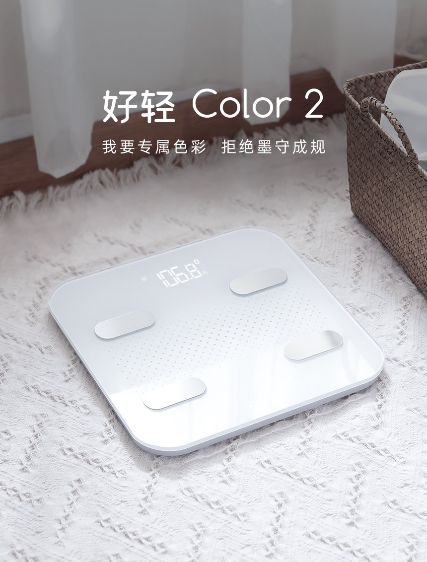 摆脱笨重的外观,全新设计的好轻 Color2,纤盈机身最薄仅 20mm,高度比上一代 Color 减少了 30%,可随手收纳在任意角落。简约即美,是体脂秤,也是艺术品。